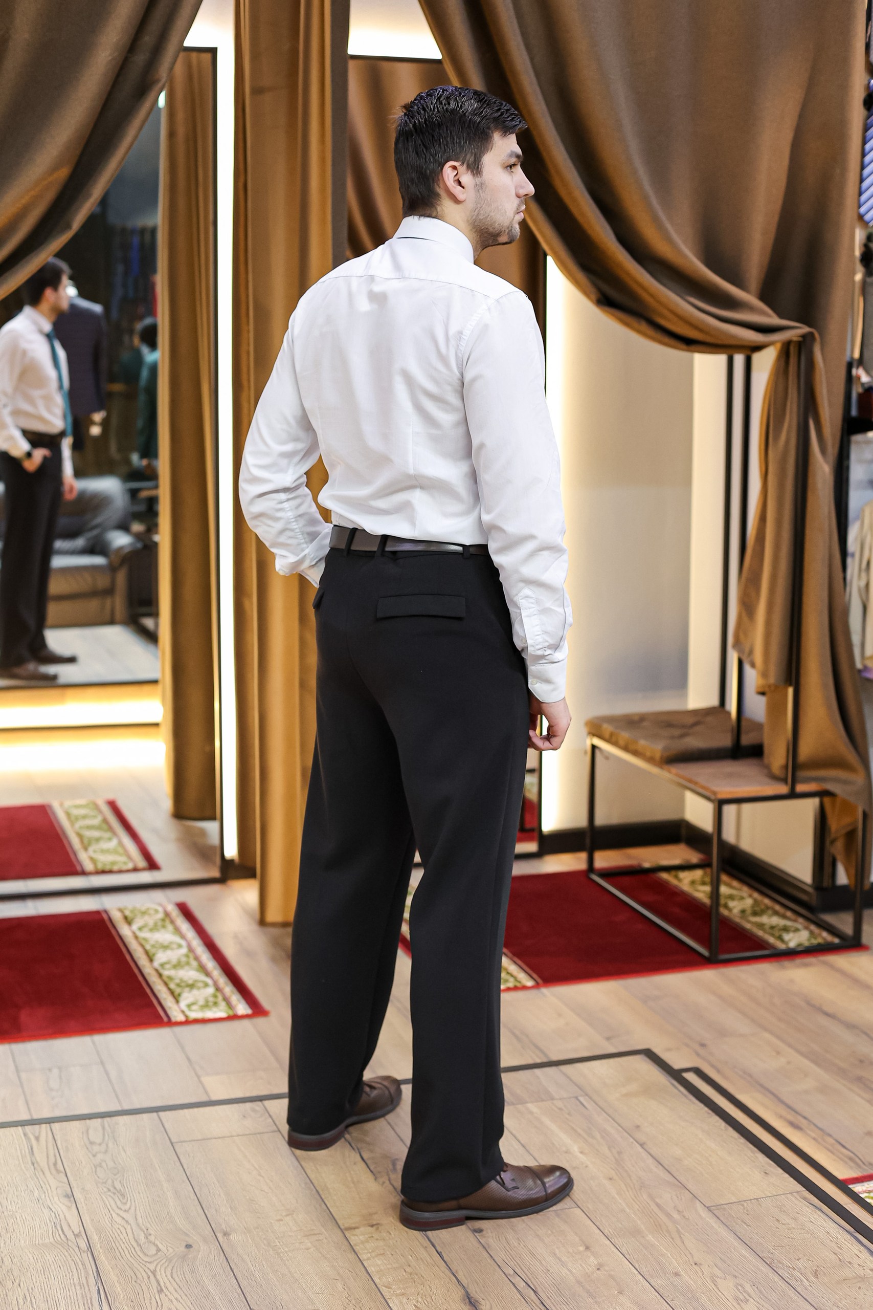 Мужские брюки TRUVOR Classic – это изделие в традиционном деловом стиле, добротно сшитое из классической камвольной шерсти, полушерсти и тканей смешанного состава. Особенностью направления Classic является то, что Вы всегда сможете подобрать себе изделие по внешнему виду и по кошельку без ущерба для качества.