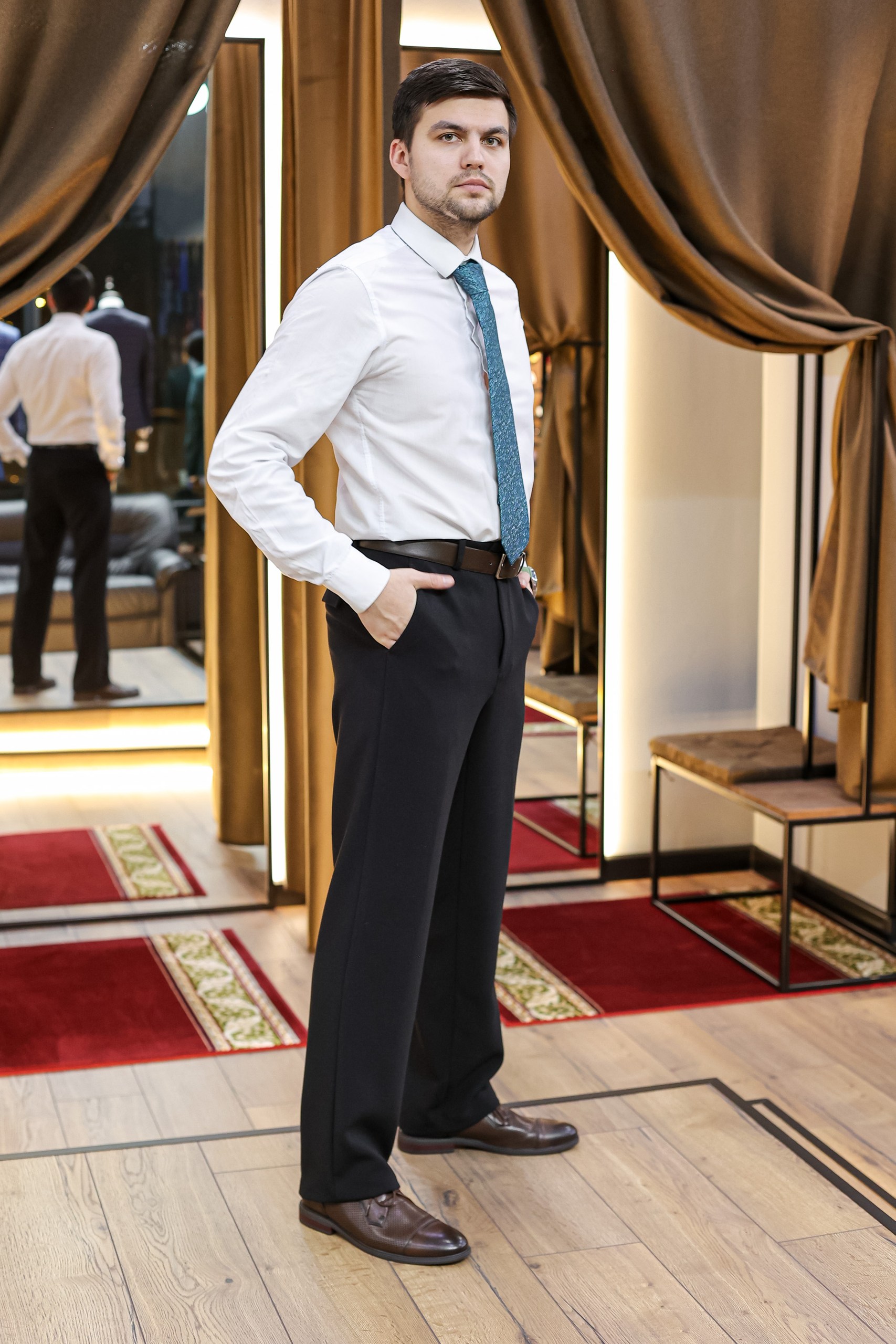 Данная модель брюк выполнена в силуэте REGULAR FIT— это силуэт свободного кроя с классической посадкой на фигуре. Изделия подходят для средних и полных мужчин, которым необходима максимально комфортная одежда.