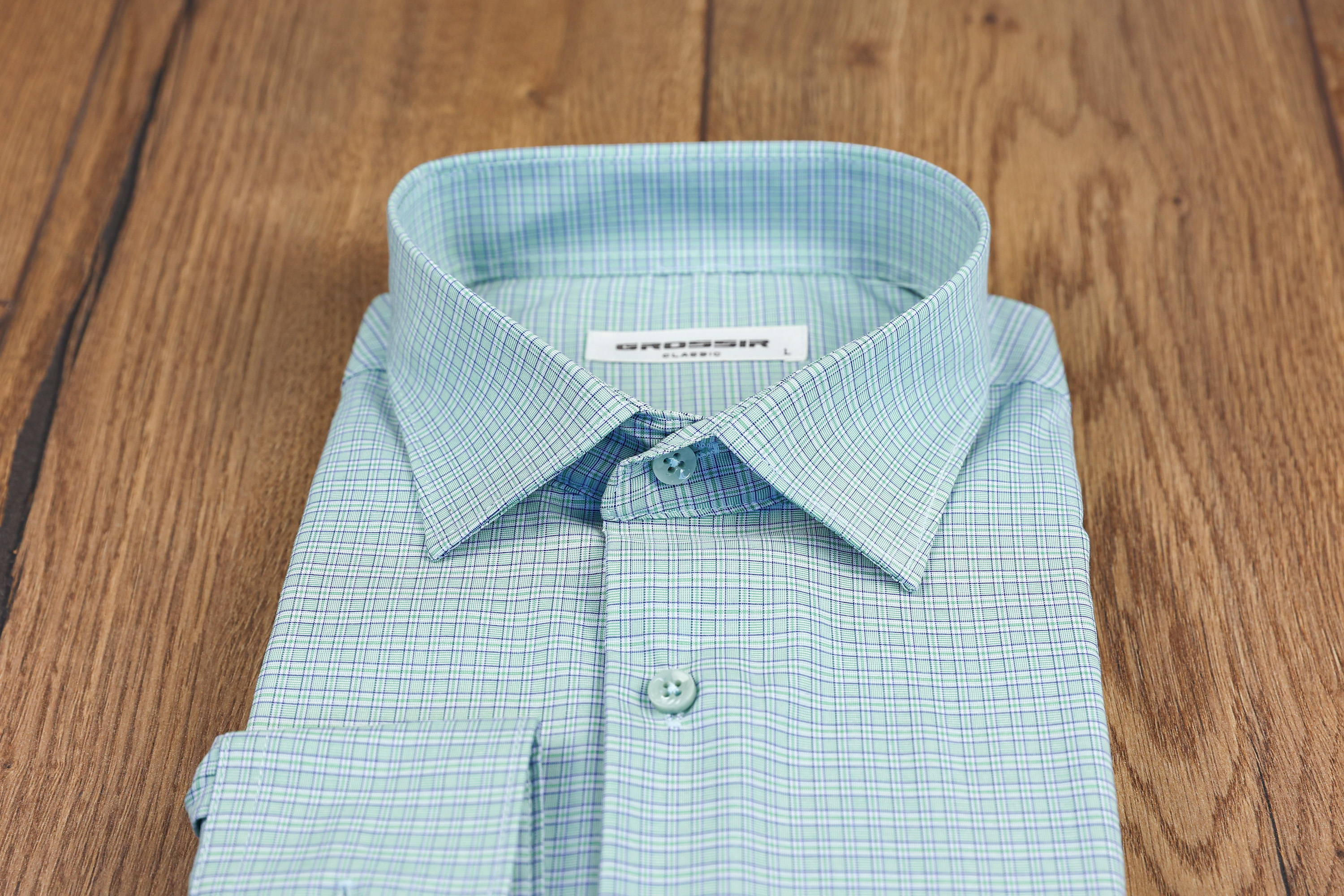Классическая рубашка GROSSIR - классического силуэта CLASSIC FIT длинный рукав, в рубашке классического кроя вы будете чувствовать себя максимально удобно в любом месте и в любой ситуации, она совершенно не стесняет движения. Отлично подходит мужчинам плотного телосложения.